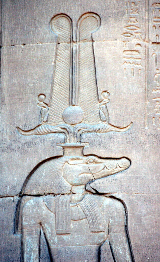 Kom Ombo’dan Sobek’i güneş nitelikleriyle gösteren bir duvar kabartması. 1